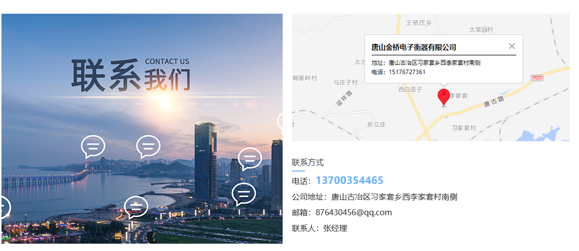 唐山金桥电子衡器有限公司坐落在唐山古冶区面临205国道,离京沈高速和唐津高速相距8公里:西至首都北京120公里,南至天津130公里,东至长城起点山海关70公里与东三省相连接,北至内蒙接壤,交通便利,地理环境优越,是你我共同发展的美好基地。